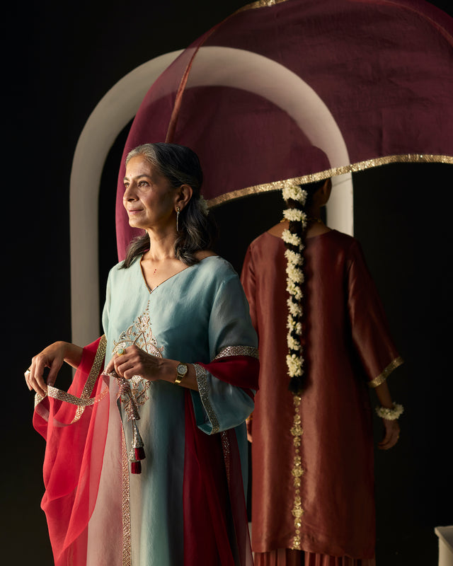 Our love for colour, delicate handiwork and playfulness inspire each creation. Paying careful attention to timeless elegance in design, we make intricate Indian attire celebrating women and the craft. We want you to wear it for years and we want it to bring you joy each time.